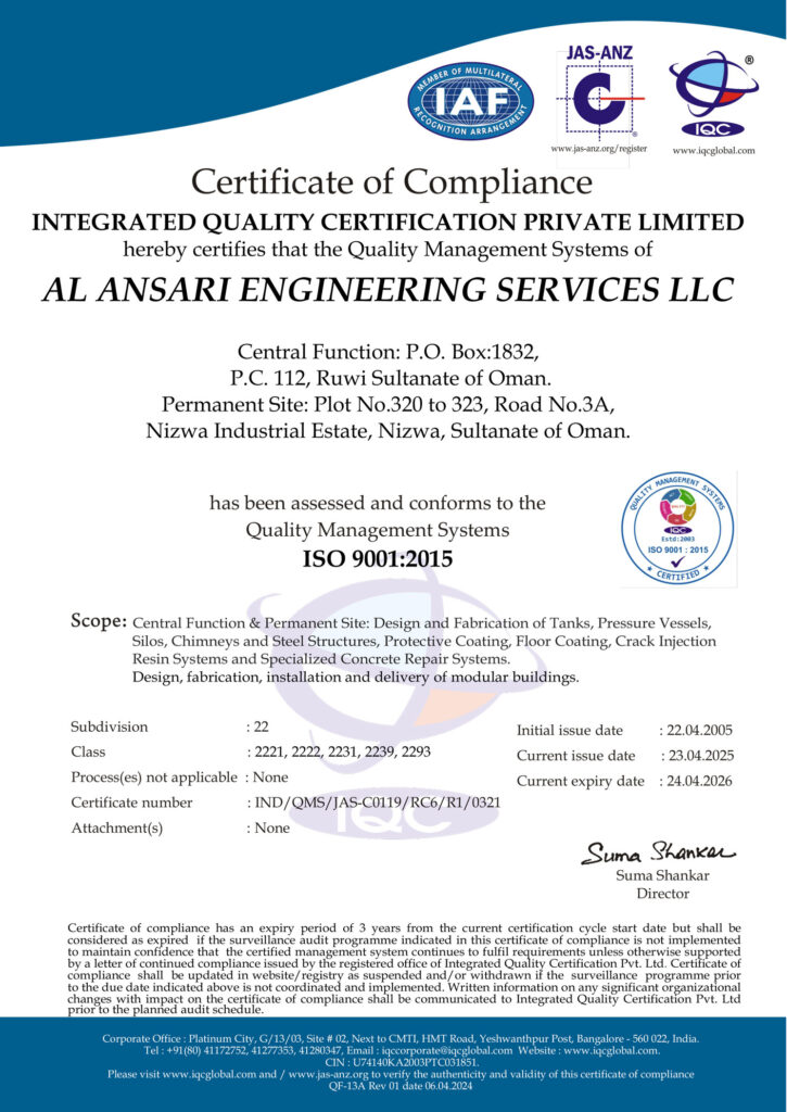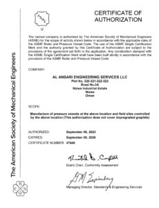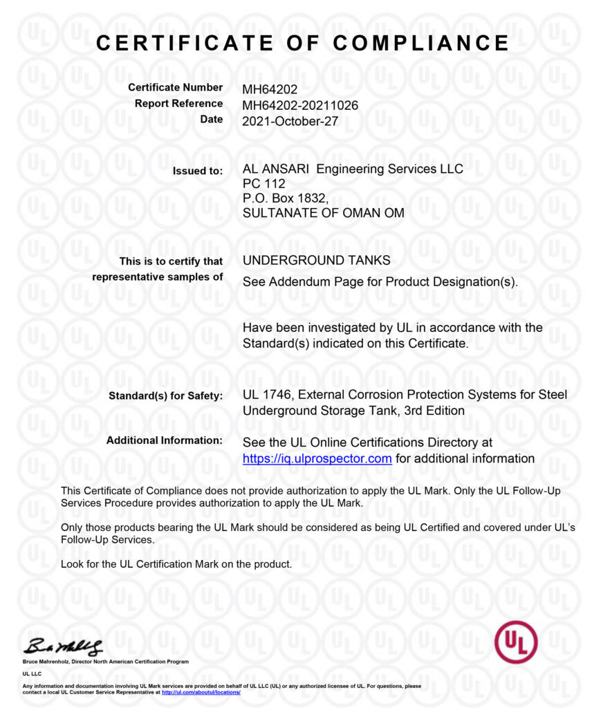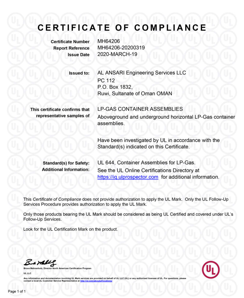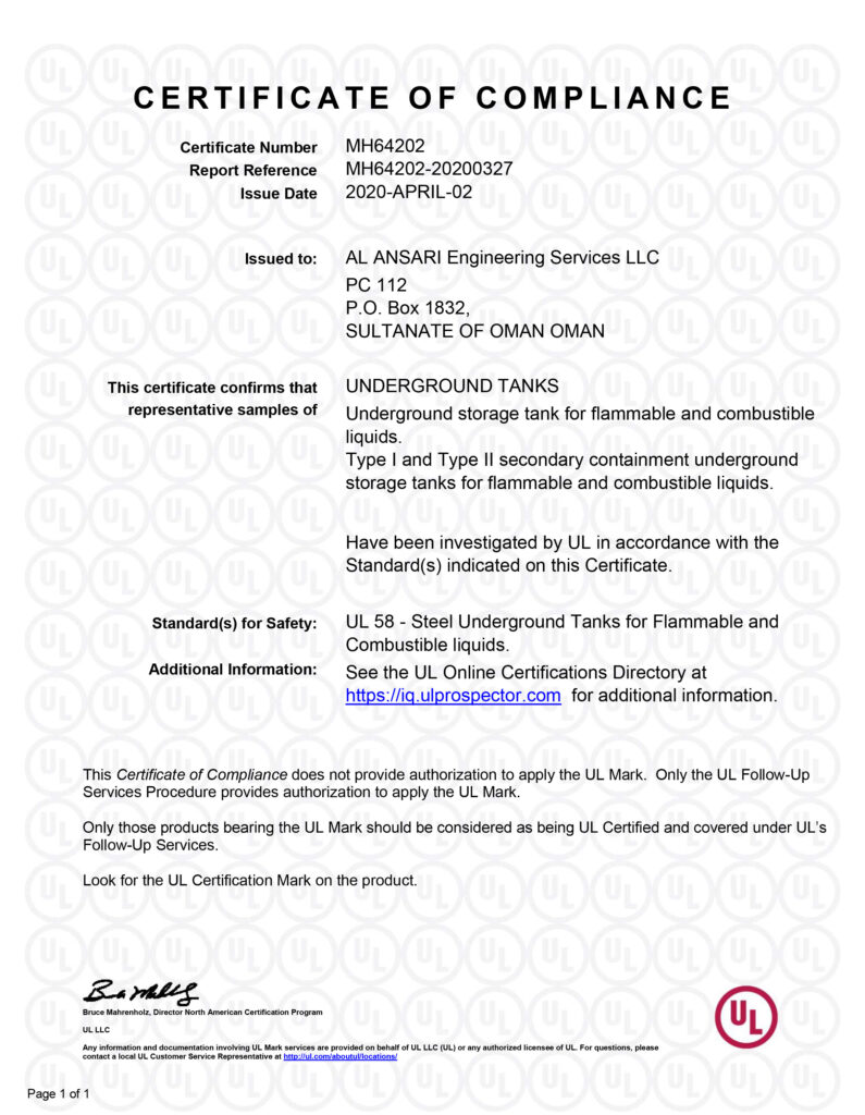 OGM Accreditation Certificates ISO 9001:2015 Certificate ASME “U” Stamp Certificate NB “R” Stamp Certificate UL 1746 Certificate UL 644 Certificate UL 58 Certificate